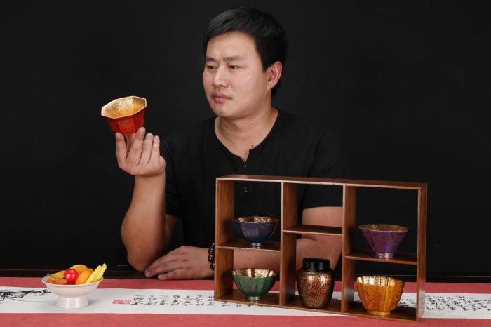 直到有一天,他无意中见到了用大漆修补过的老盏残片,叹为观止,这仿佛就是他苦苦追寻的那份奇特“感觉”,加之对漆器制作深厚的功底,他在继承传统制盏工艺的基础上发挥了个人的创意理念,赋予了建盏现代生活气息。